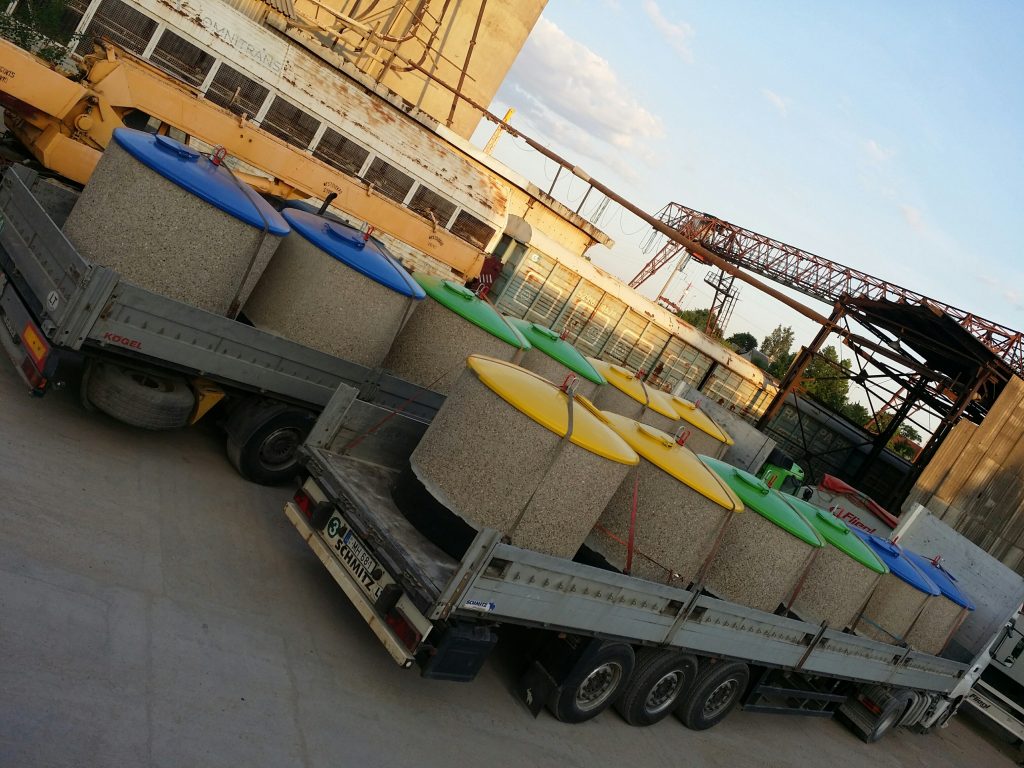 apvalūs ir skvadratiniai, 3 ir 5 kubinių metrų talpos, su plautu betono paviršiumi ir natūralaus beto.